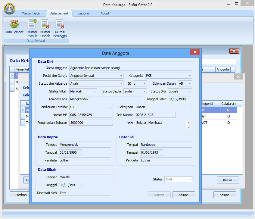 Sistem informasi untuk menangani pendataan anggota, mutasi dan pelaporan data jemaat di Gereja.